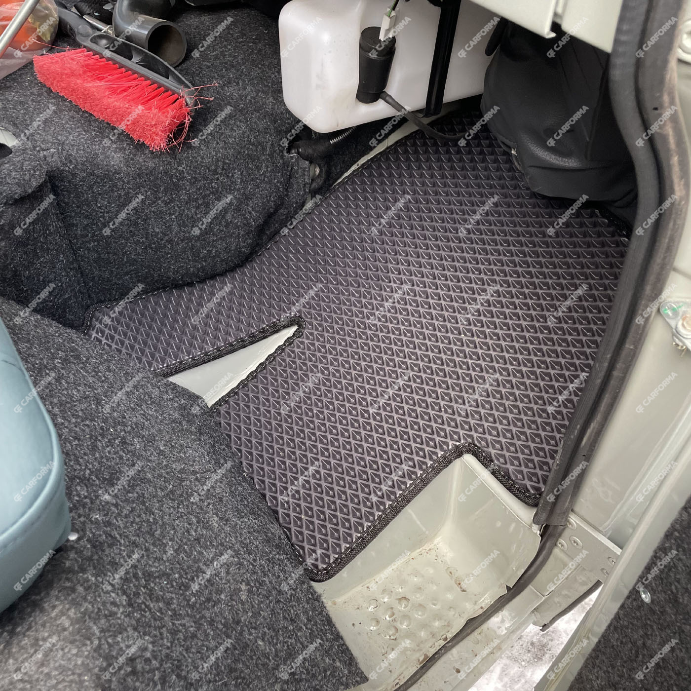 - Передние ковры полностью закрывают место под левую ногу водителя (зависит от авто)