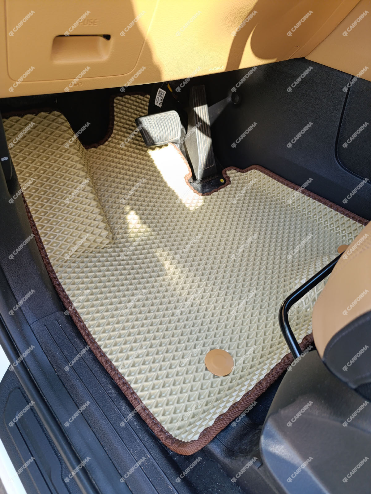 - Соответствуют оригинальным размерам и формам пола салона KIA Carnival IV 8 мест, что позволяет максимально эффективно использовать пространство автомобиля.